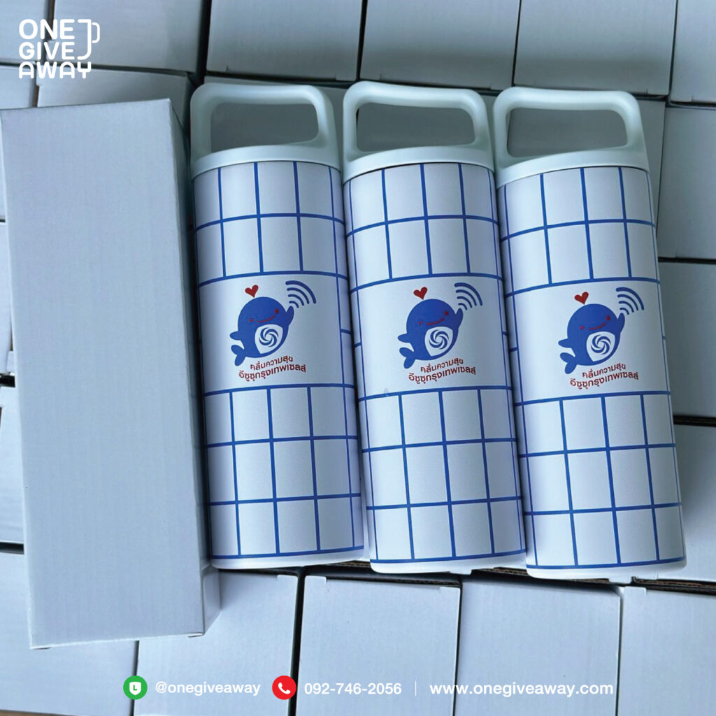 กระบอกน้ำเก็บความเย็นสกรีนโลโก้ เหมาะสำหรับเป็นของขวัญของที่ระลึก เป็นของใช้ที่ลูกค้าพกติดตัวเสมอ ทำให้โลโก้บริษัทของคุณดูโดดเด่น